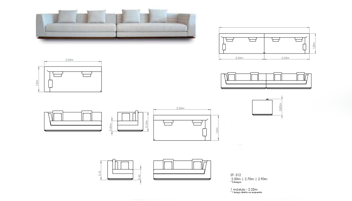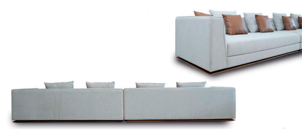 Estrutura interna em madeira eucalyptus. Assento em espuma D28 pure. Encosto e braços em espuma D23 soft. Almofadas em fibra siliconada. Pé em madeira maciça na cor amêndoa fosco. REF Tecido: E002