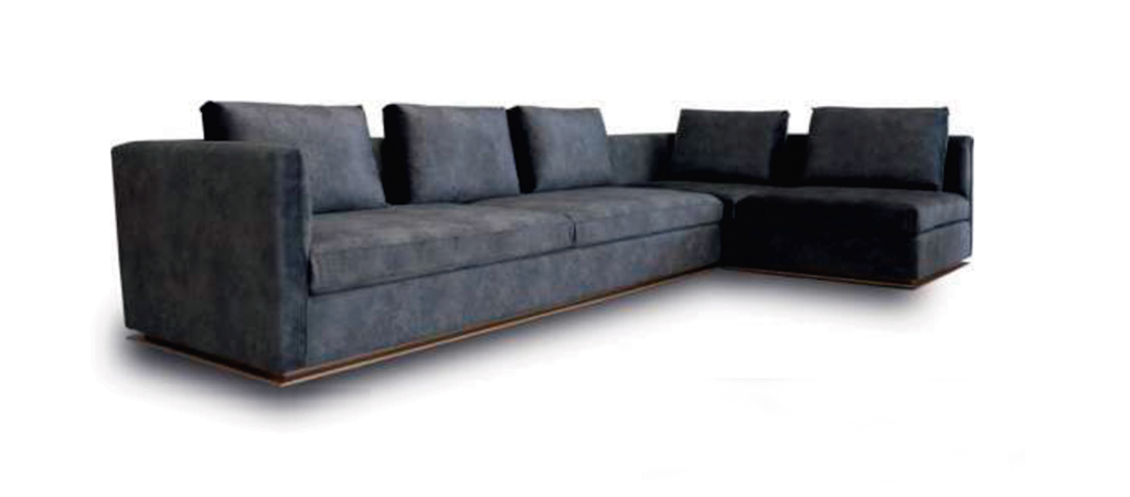 Estrutura interna em madeira eucalyptus. Assento fixo em espuma D28 pure. Encosto em espuma D23 soft. Almofadas em fibra siliconada. Pé em madeira maciça na cor amênoda fosco. REF Tecido: G012