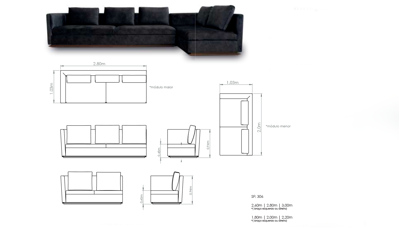 2.60m | 2.80m | 3.00m *( braço esquerdo ou direito)
