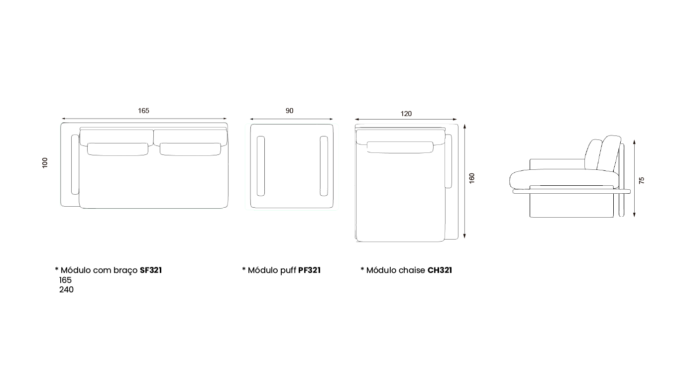 A 75 X L 375 X P 160